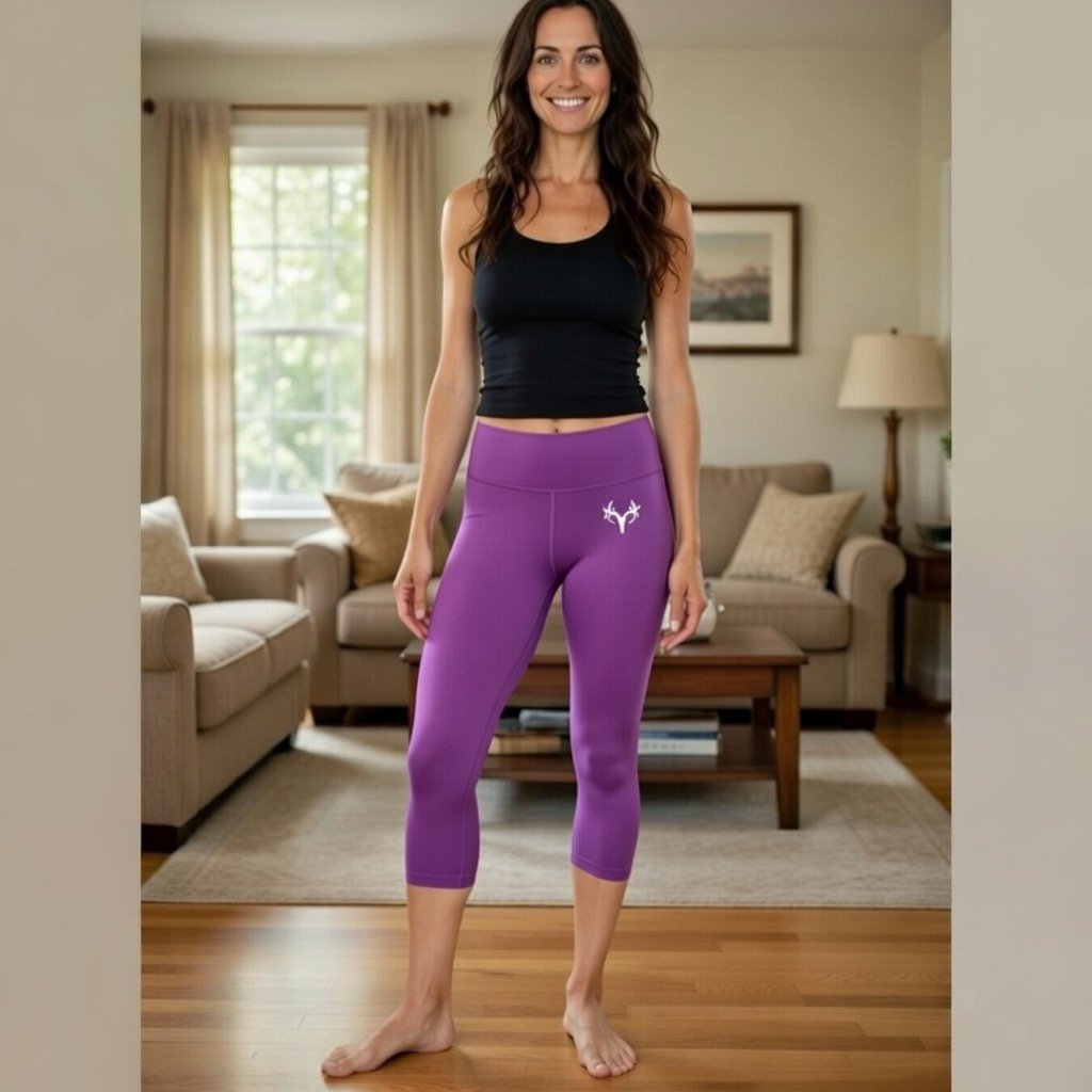 The soft brushed fabric moves naturally with your body, making these capris perfect for yoga, workouts, cycling, dance, or relaxed lounging. A high, wide waistband provides secure coverage and a flattering silhouette, while the slim leg cut enhances your shape without feeling restrictive. Soft covered leg bands help reduce shifting and binding, and the tag-free design ensures irritation-free comfort all day long.
